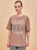 Джемпер из хлопкового трикотажного полотна. Короткий втачной рукав. Круглый вырез горловины. По переду термоапликация.