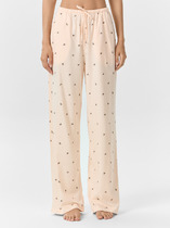 Брюки на манжетах с отрезным поясом из кашкорсе, двумя карманами в боковых швах.