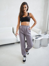 Брюки прямые из трикотажного полотна флис, с внутренней резинкой по талии и низу. Внизу брюк нашивка.— Описание у На сайте поставщика