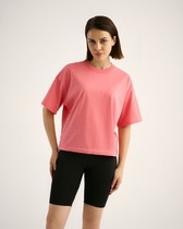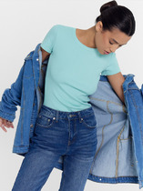 Футболка полупрелигающего силуэта, втачной рукав, горловина окантована рибаной— Описание у На сайте поставщика