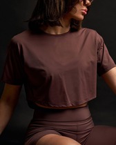 Укороченная футболка, облегающего силуэта. Притачная стойка.— Описание у На сайте поставщика