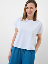 Женская базовая футболка. Модель свободного кроя, выполнена из эластичного хлопкового трикотажа джерси.