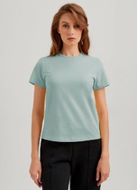 Укороченная футболка с втачным рукавом из кулирной глади. Модель универсального базового цвета с буквенным принтом.— Описание у На сайте поставщика