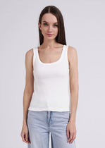 Женская укороченная майка из микрофибры в рубчик. Майка на широкой бретели, с глубоким круглым вырезом.