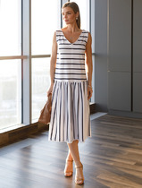 Vilatte Платье из тонкого футера с открытыми срезами D42.088 белый-синий