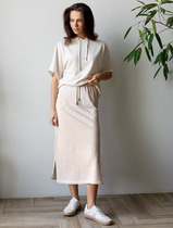 Vilatte Юбка из тончайшего футера на резинке и отделкой с открытыми срезами D46.