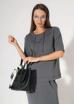 Джемпер-поло прямого кроя из текстильного полотна. Короткий втачной рукав. По горловине отложной воротник.— Описание у На сайте поставщика