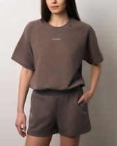 Футболка свободного кроя с фигурным низом и манжетами. шорты свободного кроя, средней длины с разрезами— Описание у На сайте поставщика