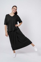 Футболка со спущенным плечом, короткий рукав. В боковых швах обработаны разрезы. V-вырез— Описание у На сайте поставщика