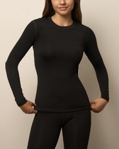 Женский облегающий боди. Втачной длинный рукав. Вырез круглый. Застежка в паховой части на крючки.