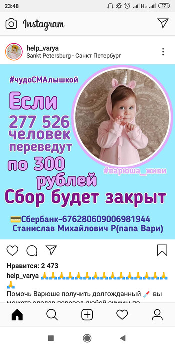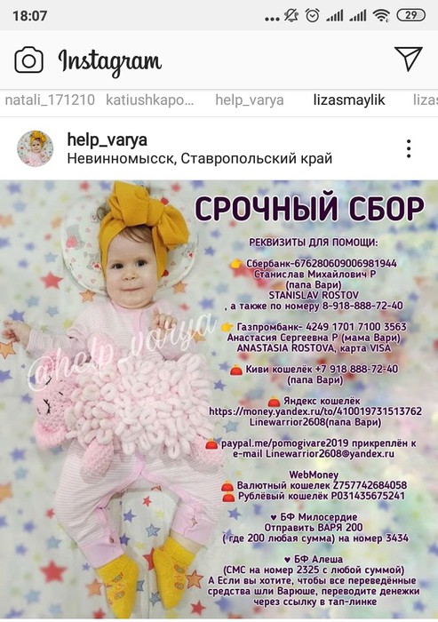 Помочь Варюше получить долгожданный вы можете сделав перевод любой суммы по реквизитам: