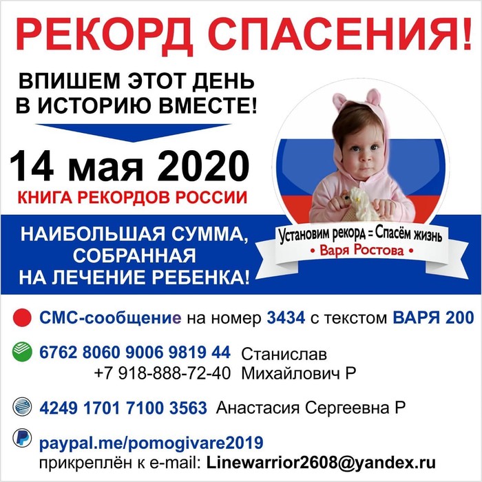 paypal.me/pomogivare2019 прикреплён к e-mail Linewarrior2608@yandex.ru
