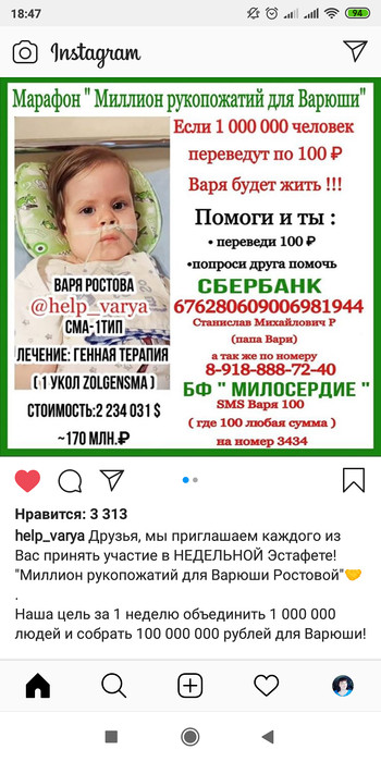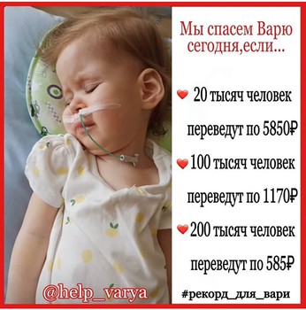 Наша цель за 1 неделю объединить 1 000 000 людей и собрать 100 000 000 рублей для Варюши!