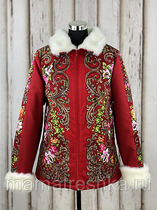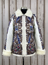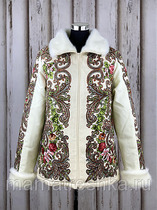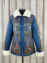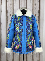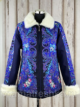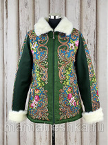 Куртка с воротником "под норку" зеленая с бирюзовым.