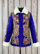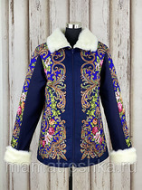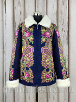 Платье тёмно-синии с рисунком павлопосадского платка 2