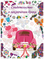 ОБЛОЖКА ДЛЯ СВИДЕТЕЛЬСТВА О БРАКЕ КАРТОН МАШИНА БАБОЧКИ