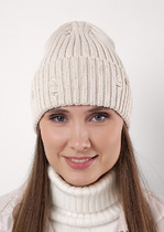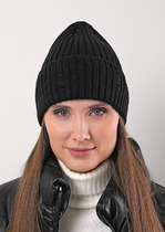 Женская двойная шапка, декорирована нашивкой логотип. Подойдёт для холодной осени- тёплой зимы.— Описание у На сайте поставщика