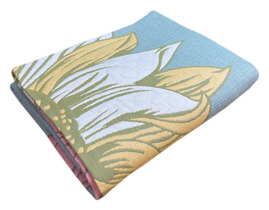 Покрывало п / лен КРУПНЫЕ ПОДСОЛНУХИ - бирюзовый р-р 150х200