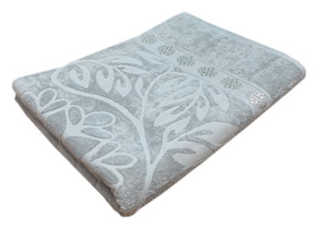 Покрывало махровое ВЫБИТЫЕ ЛИСТЬЯ - серый р-р 150х200