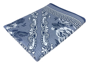 Покрывало п / лен КРУПНЫЕ ЦВЕТЫ - синий р-р 150х200