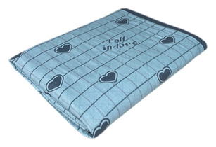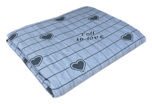 Покрывало п / лен СЕРДЦА В КЛЕТКЕ - голубой р-р 200х230