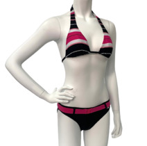 Черный купальник в серую полоску