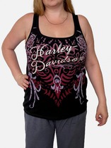 Женская майка Harley-Davidson с люверсами – широкие бретели, серебристый принт-о