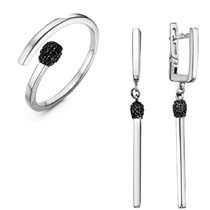 Серебряный гарнитур "Спичка" с черными фианитами - 1194