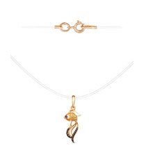 Позолоченное колье из серебра на леске "Золотая рыбка" c желтыми фианитами - 621