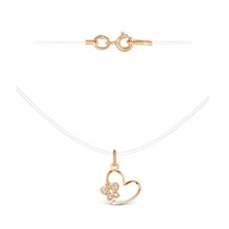 Позолоченное колье из серебра на леске "Сердце с бабочкой" - 790 - п