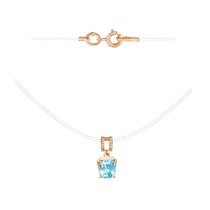 Позолоченное колье из серебра на леске с фианитом голубого цвета - 994 - п