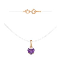 Позолоченное колье из серебра на леске с фиолетовым фианитом - 943 - п