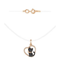 Позолоченное колье из серебра на леске "Кошка с бантиком" с черными фианитами -