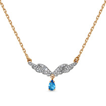 Позолоченное колье из серебра "Крылья" на цепочке с голубым фианитом - 066 - п