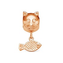 Позолоченное колье из серебра на леске "Кошка с бантиком" с бесцветными фианитам