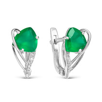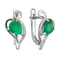 Цвет вставки на фото: зеленый; Проба: 925; Металл: серебро; Тип вставки (камня): зеленый агат, фианиты; Вес: 4.9 г— Описание у На сайте поставщика