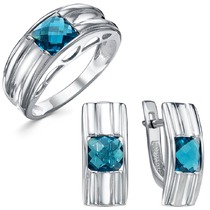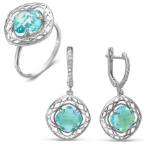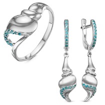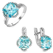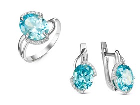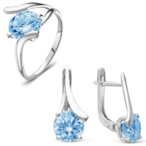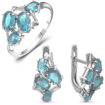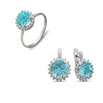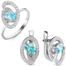 Гарнитур из серебра с фианитами голубого цвета - 285