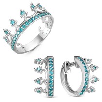 Гарнитур из серебра с голубыми фианитами - 047