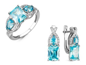 Гарнитур из серебра с голубыми фианитами - 1310