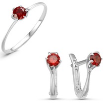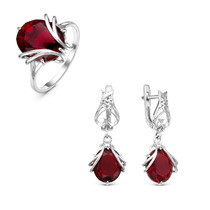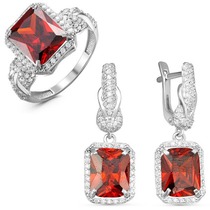 Серебряный гарнитур с фианитами цвета гранат 005