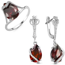 Серебряный гарнитур с фианитами цвета гранат 084