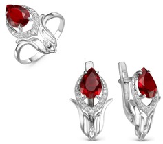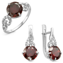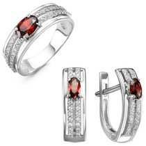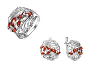 Серебряный гарнитур с фианитами цвета гранат 054