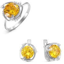 Серебряный гарнитур с фианитами желтого цвета 207