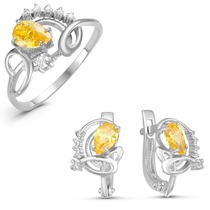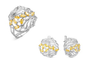 Серебряный гарнитур с желтыми фианитами - 1212
