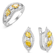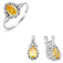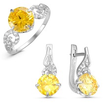 Серебряный гарнитур с фианитами желтого цвета 004