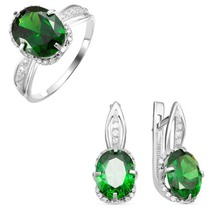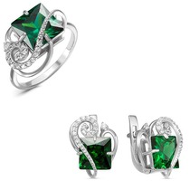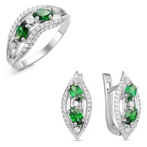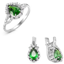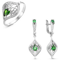 Серебряный гарнитур с фианитами зеленого цвета 021
