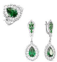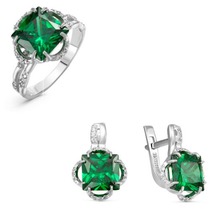 Серебряный гарнитур с фианитами зеленого цвета 041