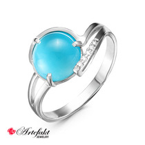 Серебряное кольцо с голубым камнем "кошачий глаз" - 357