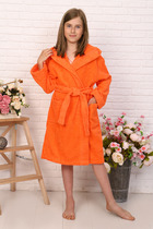 Халат детский махровый "Элит" с капюшоном, цвет: 1049-Коралловый, р. 128/134