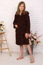Халат детский махровый "Элит" с капюшоном, цвет: 915-Горький шоколад, р. 128/134